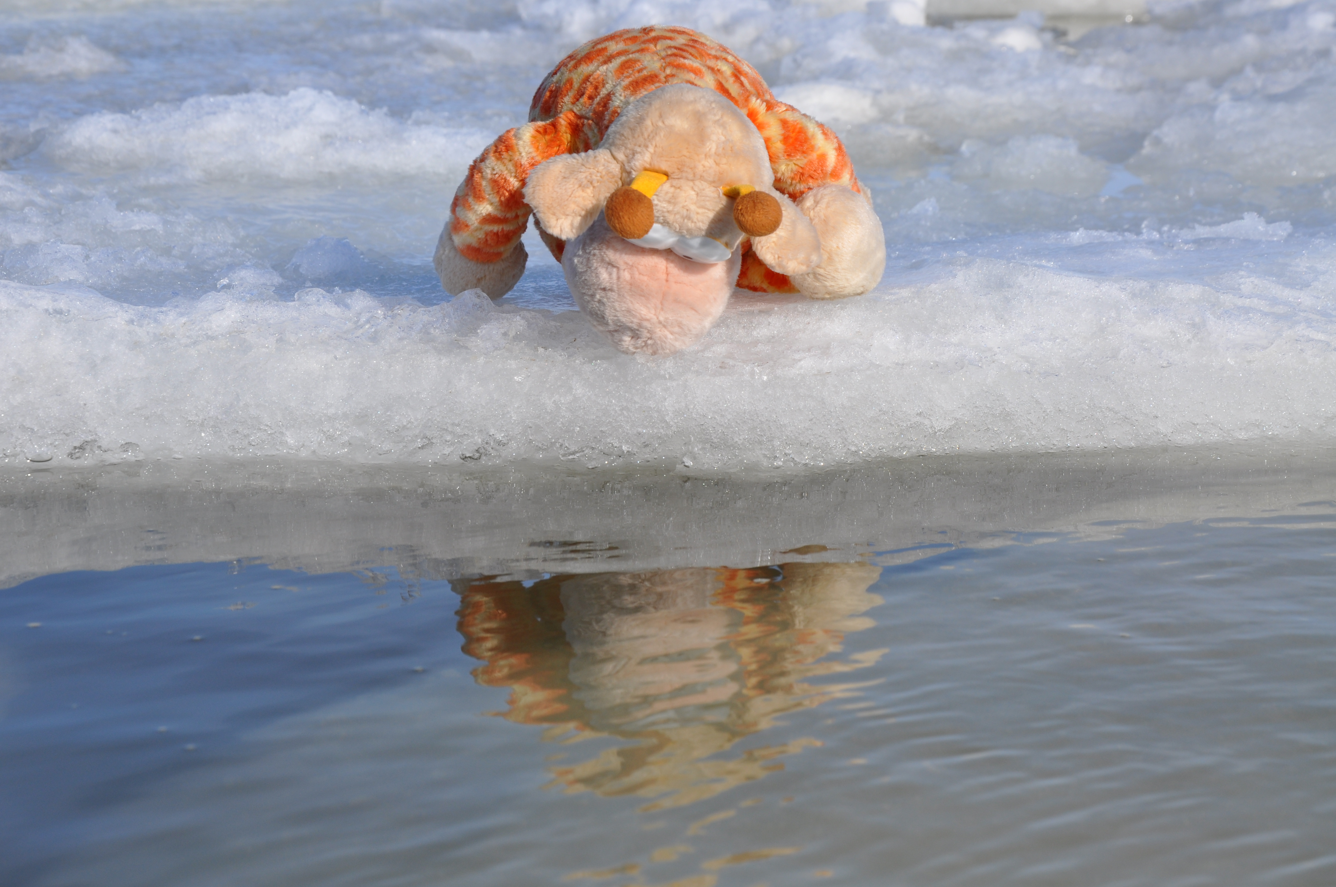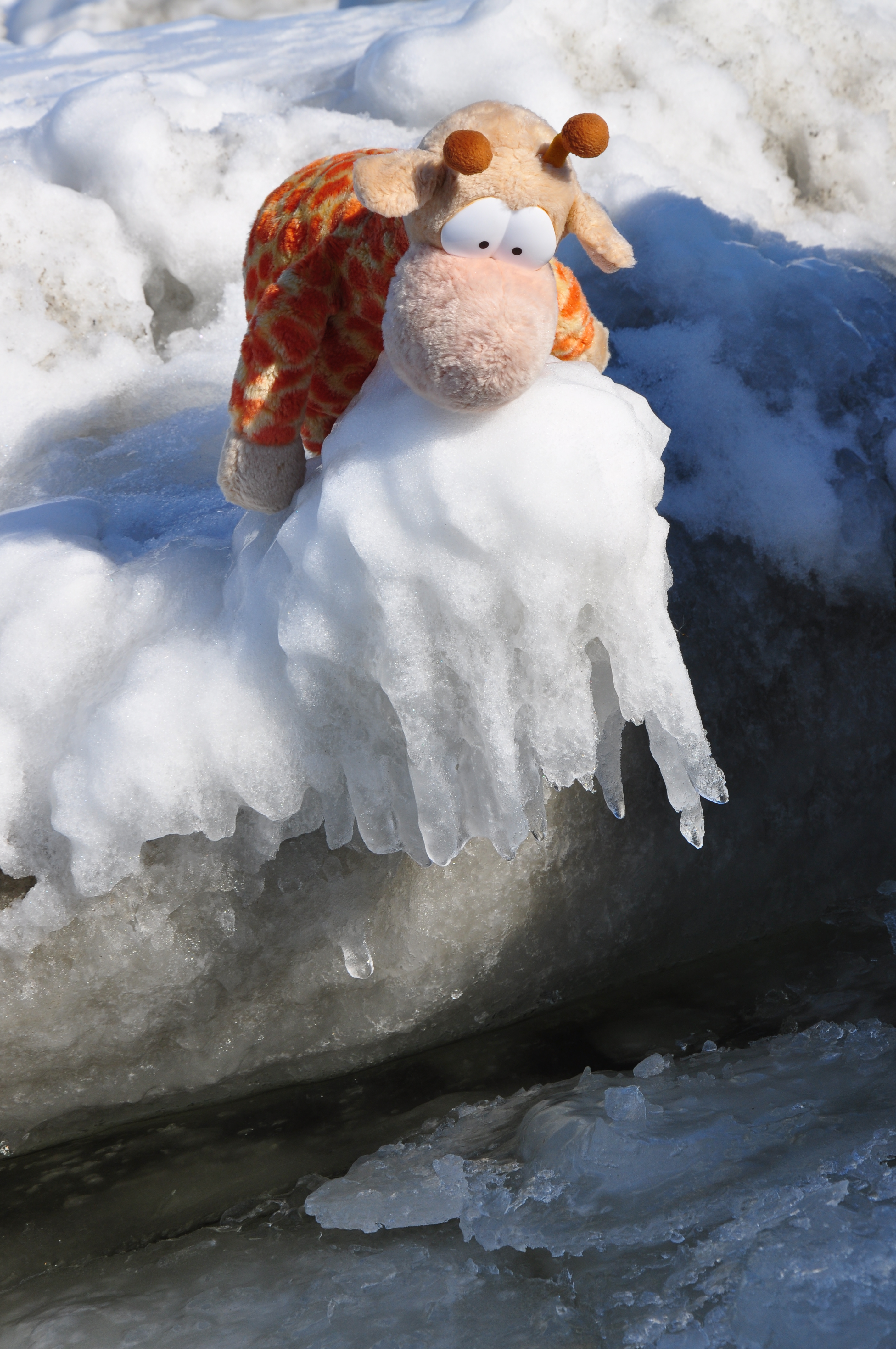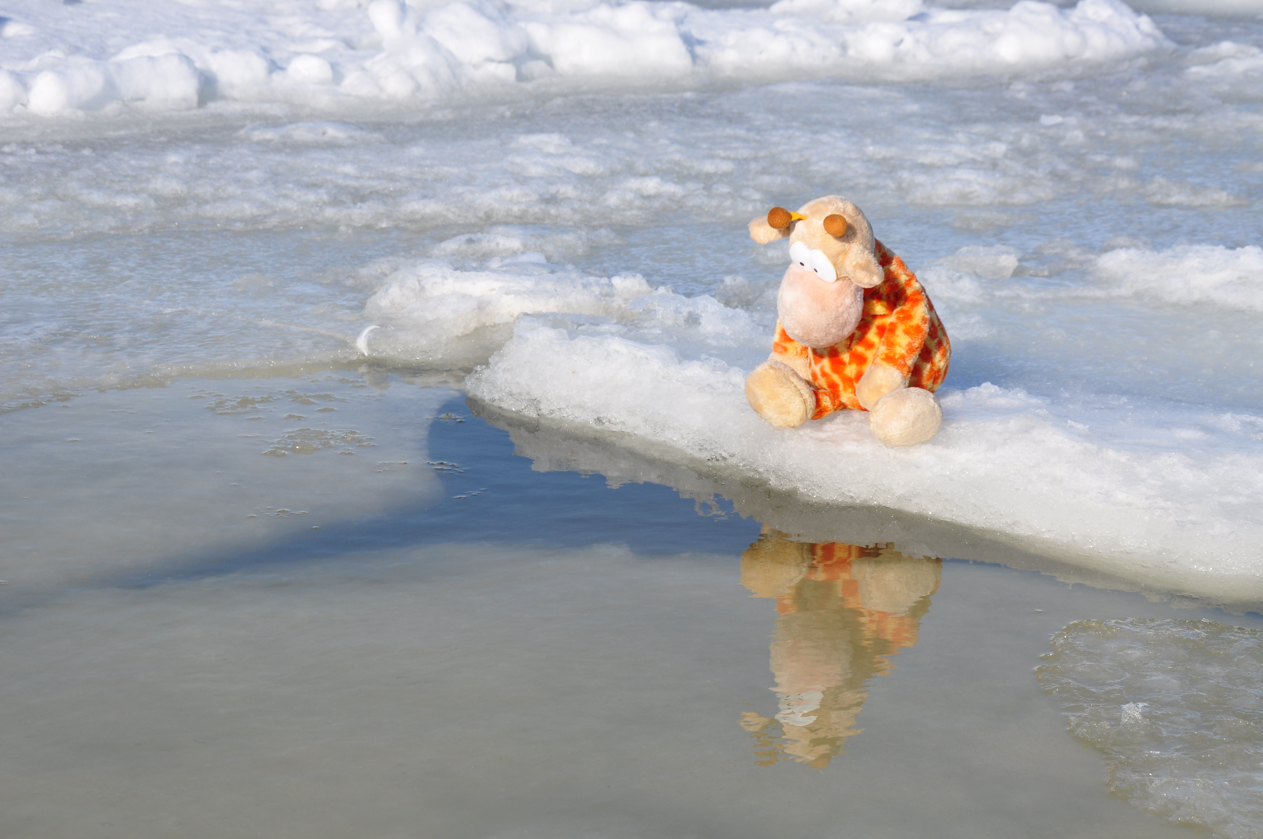 i have to tell you what happened to me last week when i went a little bit. somehow there is also the sea nearby and because of all this cold weather previously, there is lots of ice. so i went to see, if the ice is strong enough for a giraffe. it was! but then something happened so that there was all this water between me and the land and i got stuck!!