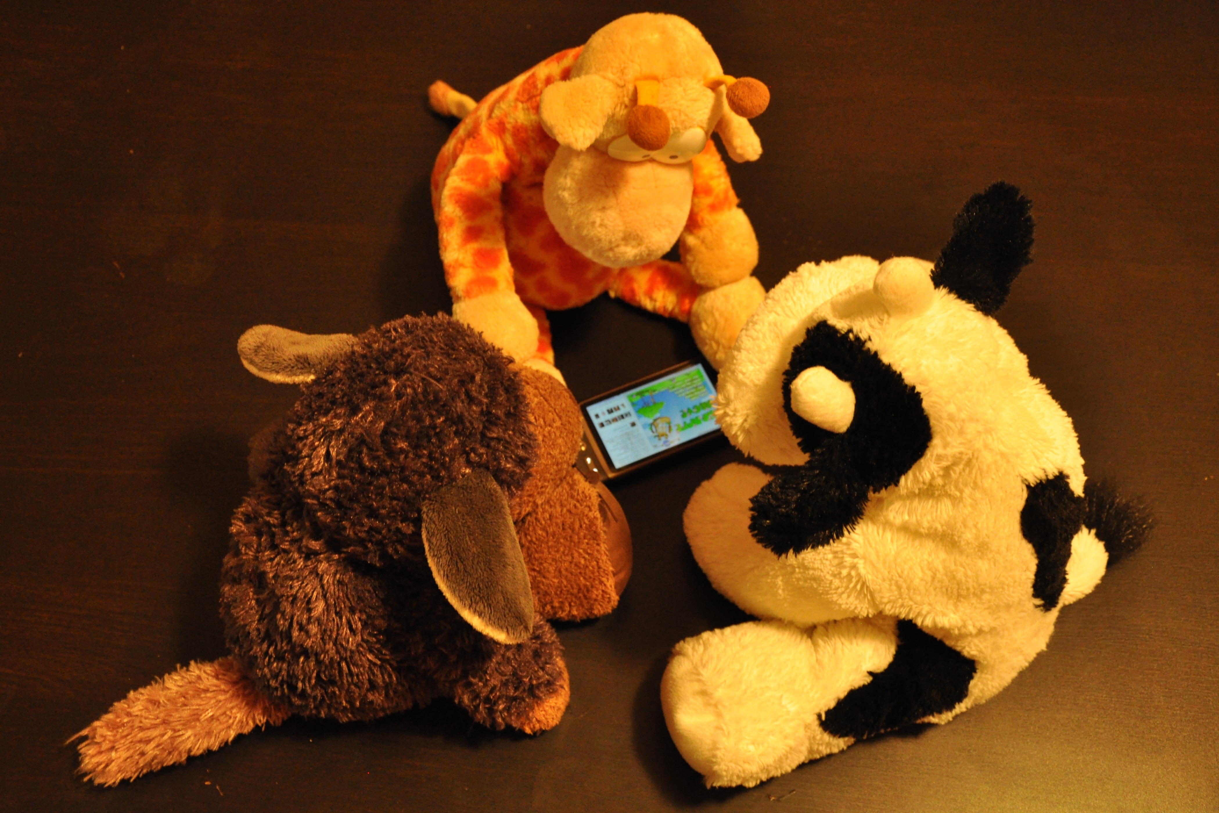 here i’m showing Undu and Vassu how to play the game on this phone! they got very exited, i can tell u. because, Angel never lets them play with the big computer u know. so they have very little experience in any fun Giraffe games. especially the ones including apples! not any longer, i can tell u that! but hey, i gotta run now! in fact i have to go and learn now how this fotografing thing works! so, have fun and cu l8r!!!