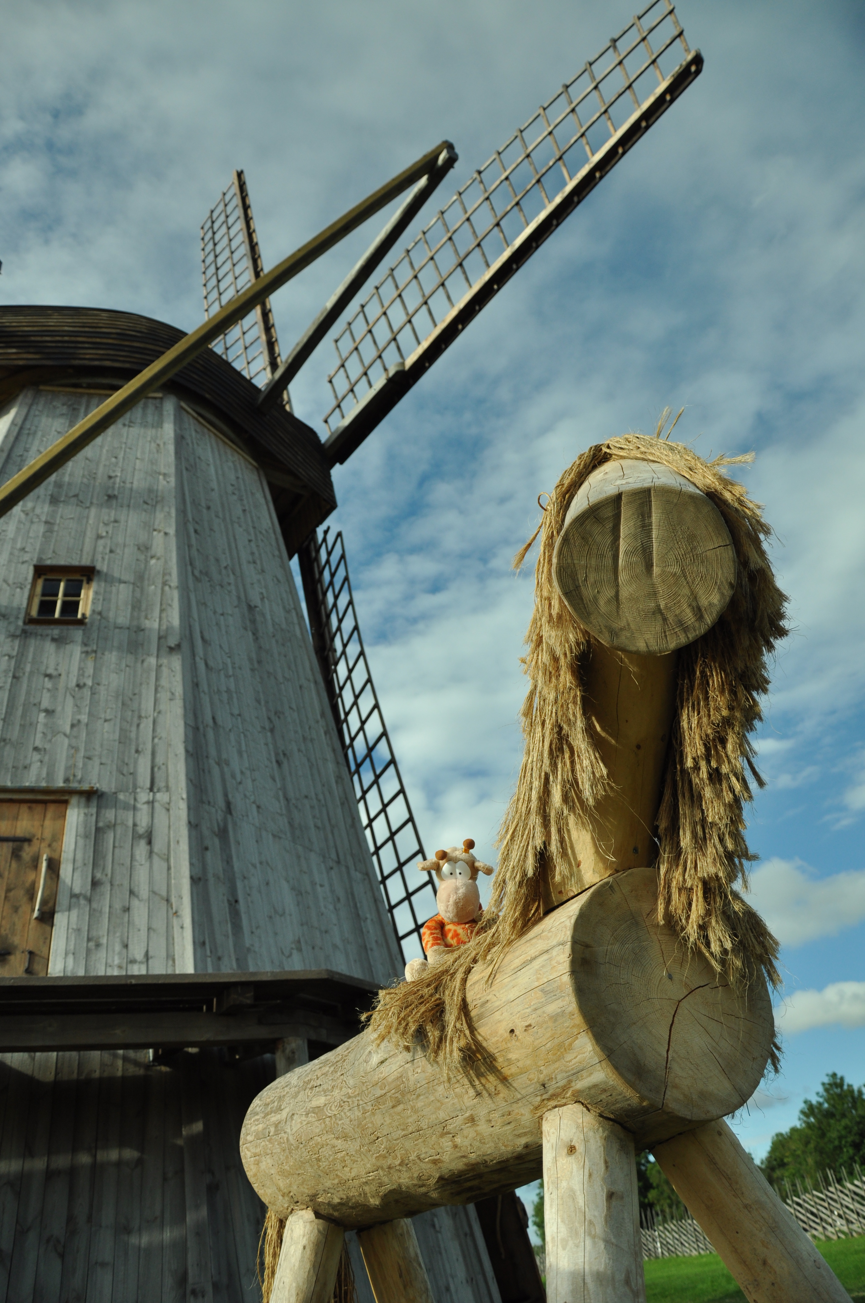 i can say that there are 5 or so windmills alltogether in this place of windmills, but i am not going to tell u about each of them. because they kind of look quite similar u know!! so, what started out as a little fun trip of geocaching ended up being even more fun with all this windmill exploration, meeting a Rat, the Petersons and fotografs on wooden horses. i guess it is all just gr8 fun for a giraffe, like me – don’t u think? now i have made a little plan of going to visit Holland in order to check out the windmills over there.. but wait, that’s a little secret for now – only Angel knows about it. until then – perhaps u know any other places with windmills that i could travel to? let me know and have fun!