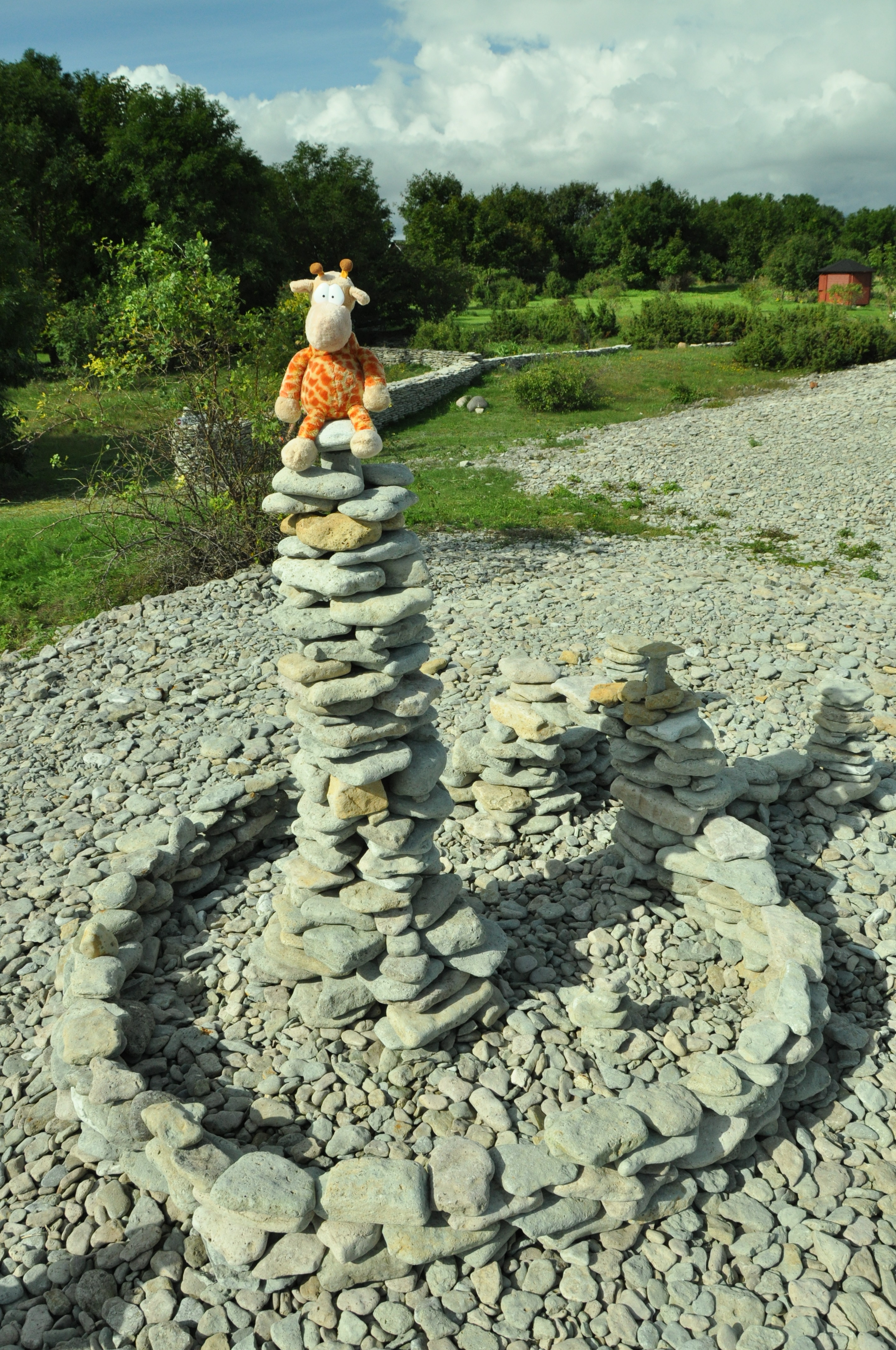 no need to take off shoes, there are still stones everywhere! and mind your head! especially, if you are a giraffe! it’s because of the gate that i built here. u know, i wanted to build a gate with closed top because that way u can walk around the stone wall without ever needing to come off. so, it’s a bit like a carousel really. except that u need to walk or run yourself. i must say i ran three laps and my head got all dizzy. it’s probably because of my long neck, u know..