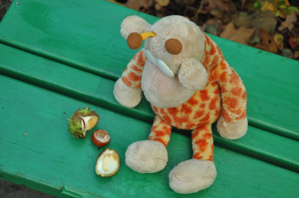 guess what i found? a puzzle! i went to play with my friend Jette and i found this thorny ball. Apparently, it is a chestnut of some kind – with two nuts inside! Very much fun trying to put it together again – not so easy because of the thorns. Quite tasty too, hehe! Have u tried? Have fun!