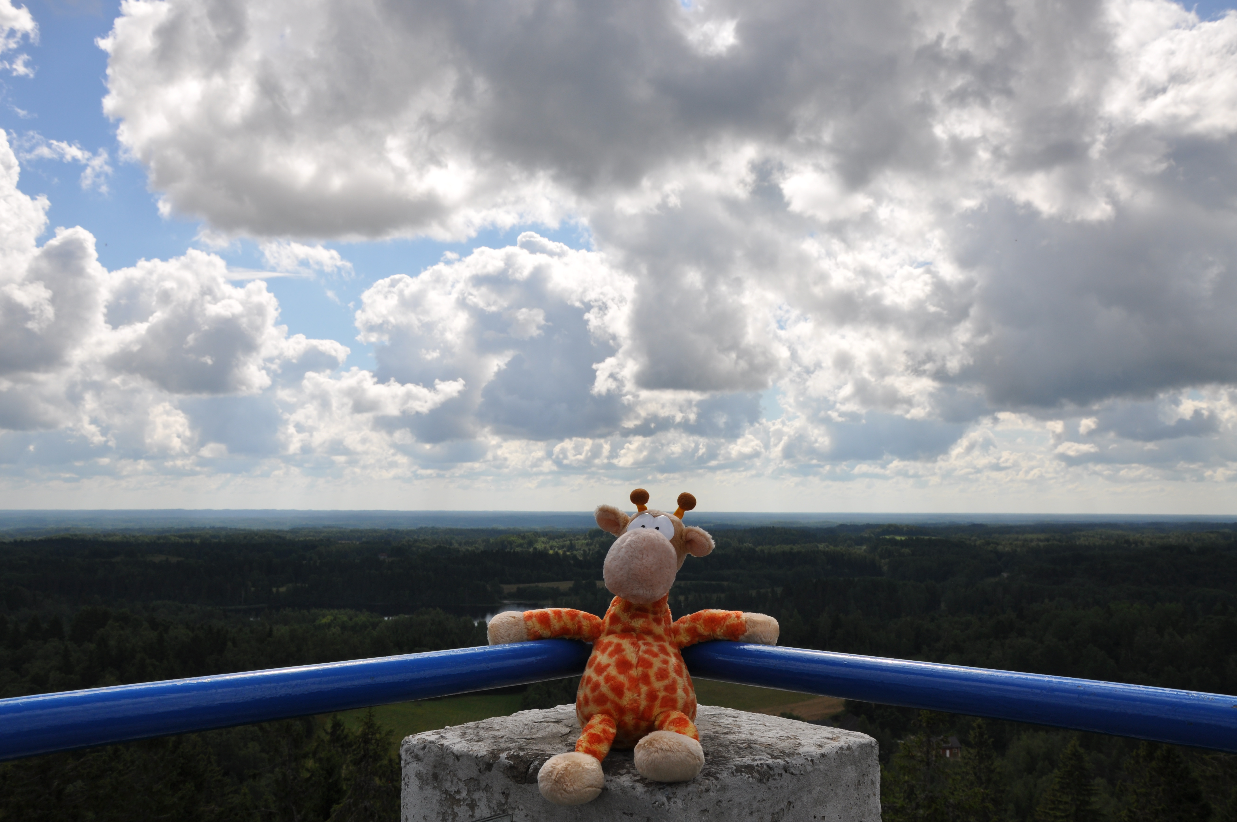 so, naturally, i had to take some fotografs. the thing with this Suur Munamägi is, that they have a large tower on top where everybody can go with a ticket and enjoy the view. because of the tower, u don’t need a long neck to see far. in fact, instead you need a pretty good weather and binoculars. so, here’s me finally on top of the tower: