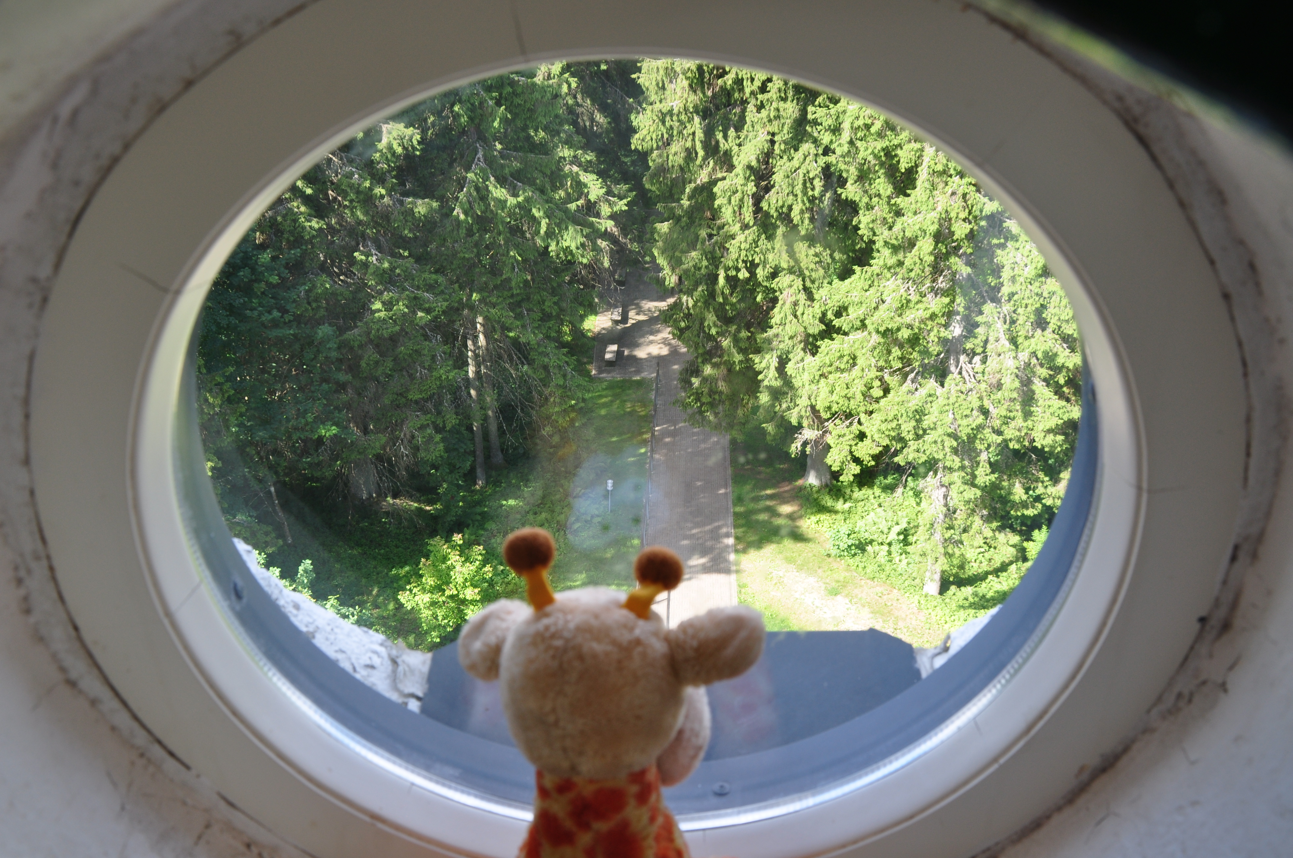but even climbing, it is not so easy. luckily, they have benches after every once in a while, so that’s quite nice. also, u can sit there and look at some fotografs or spy on other people who are just arriving on top of the hill, like from this round window here: